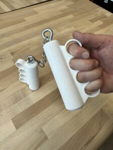 NunKnucks (2026) is part of the “crass knuckle” series that represents over-engineered wearable brass knuckles considering aesthetics and ergonomics but overlooking functionality in such a way that the functionality becomes useless. In some instances the crass knuckles might be meaningless or reference itself in form, design, material, or function.
