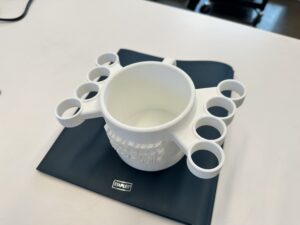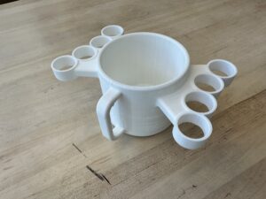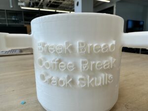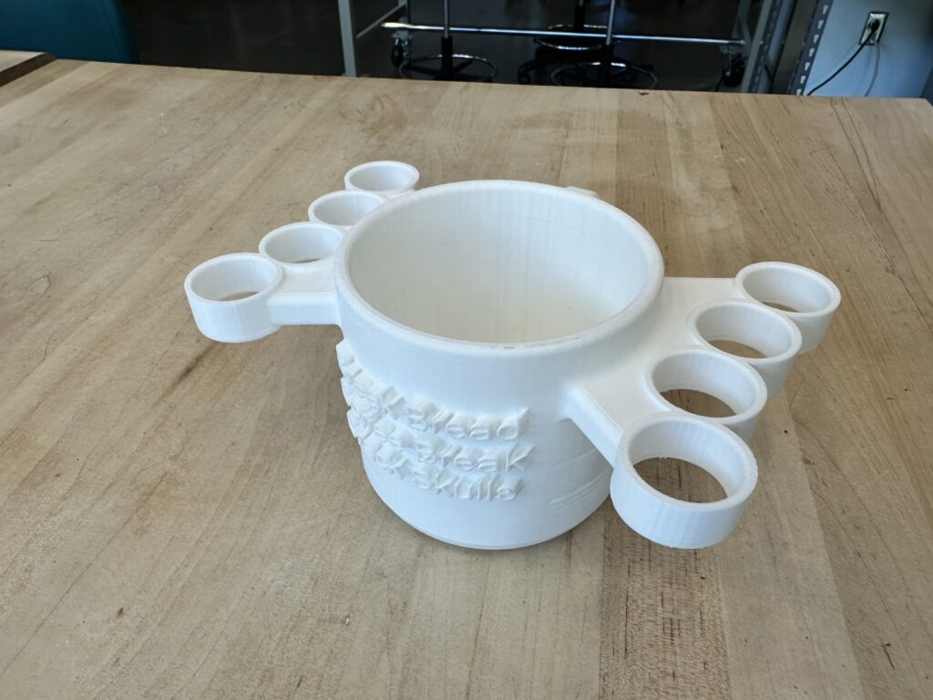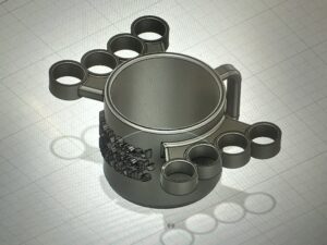Punch Coffee Drunk (2026) is a playfully absurd multi-user object wearable that merges a simple coffee cup with two pair of brass knuckles.