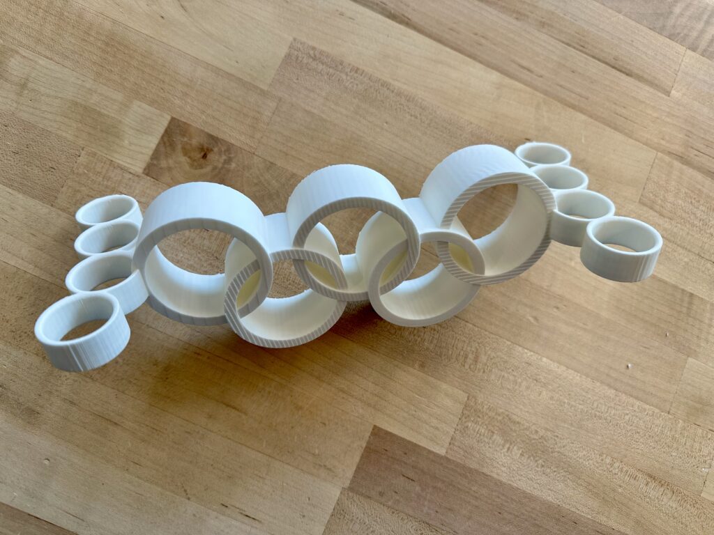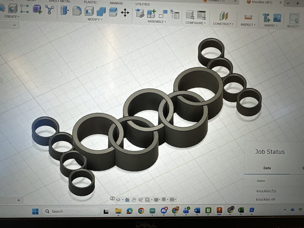 Punch Olympics (2026) is a playfully absurd multi-user object wearable that merges the familiar Olympic symbol with two pair of brass knuckles.