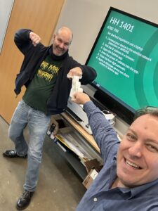 International Sculpture and Assistant Professor at GMU John von Bergen is depicted showing how the Punch Olympics work.